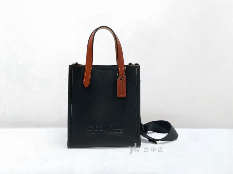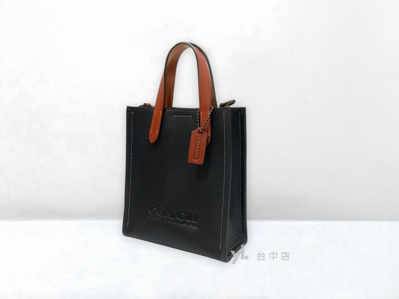 路徑: 首頁 / 商品 / BRAND / 其他品牌 / I1668 Coach 黑牛皮拚咖牛皮咖釦Relay 17手提斜背托特包 (台中店)...
