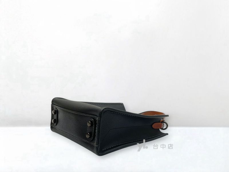 I1668 Coach 黑牛皮拚咖牛皮咖釦Relay 17手提斜背托特包 (台中店)