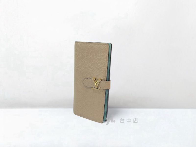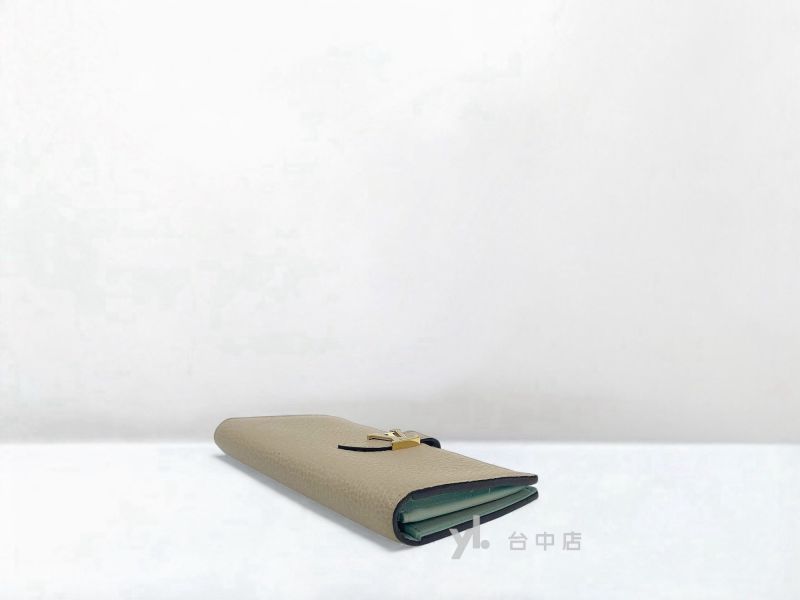 I1675 LV皮夾 卵石色牛皮內天藍色Capucines金插釦對開式8卡長夾M81367 (台中店)