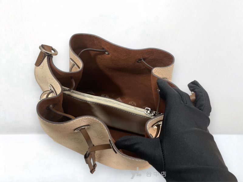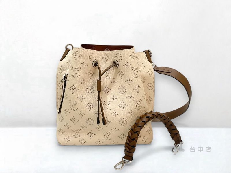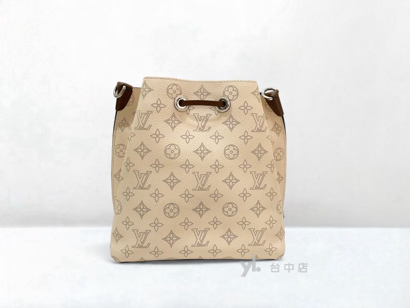 I1677 LV 米白牛皮洞洞銀釦Muria手提斜背水桶包M55801 (台中店)