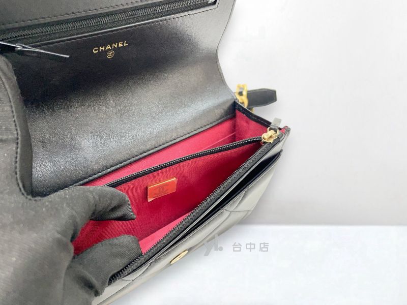 路徑: 首頁 / 商品 / BRAND / Chanel / I1691 Chanel包包 黑羊皮霧金釦19 6卡斜背WOC AP0957 (台中店)...