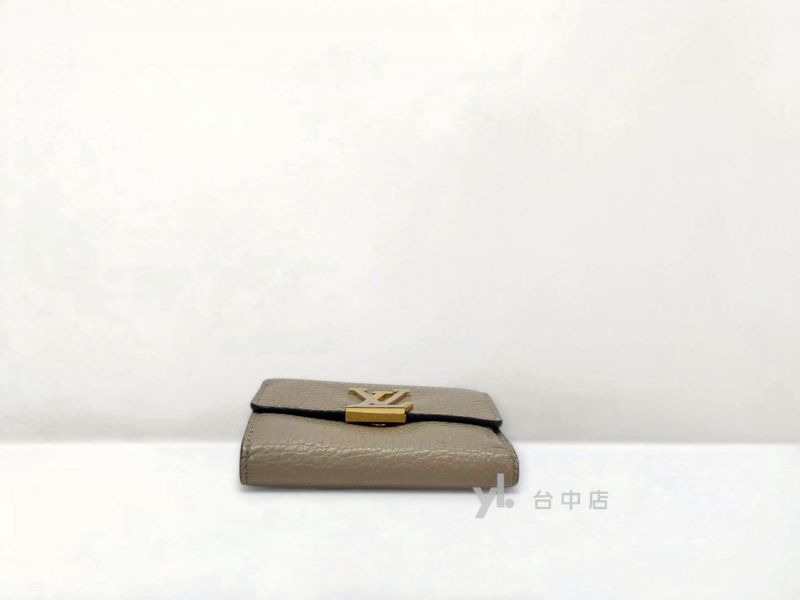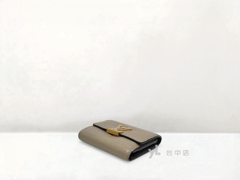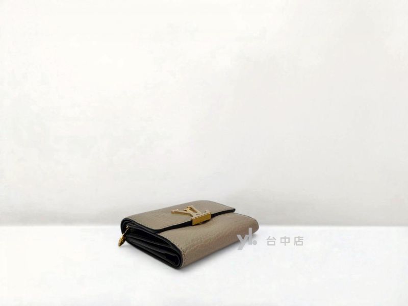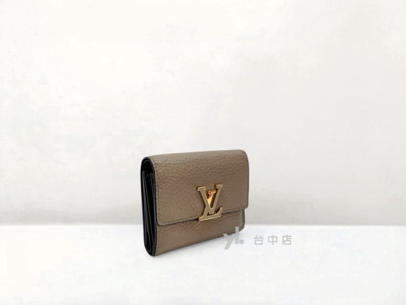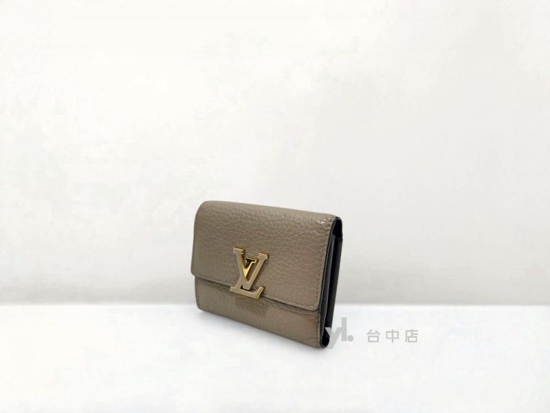 I1758 LV皮夾 灰色牛皮內咖啡色金釦Capucines XS三折5卡短夾 M68747 (台中店)