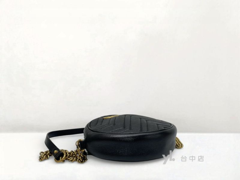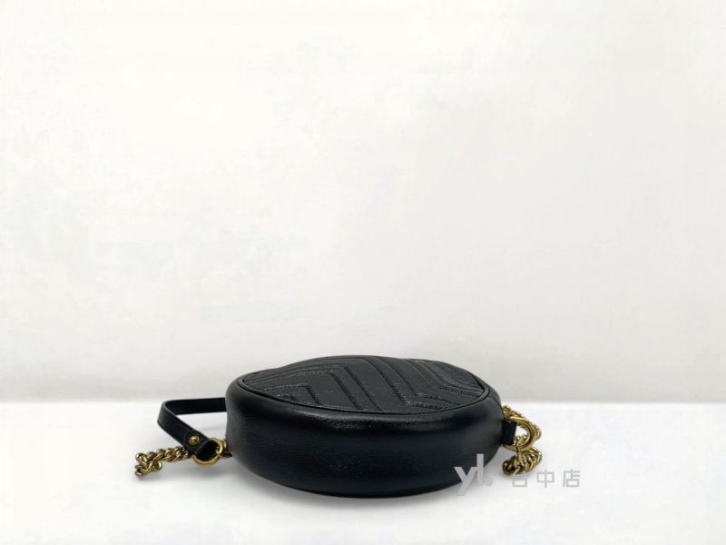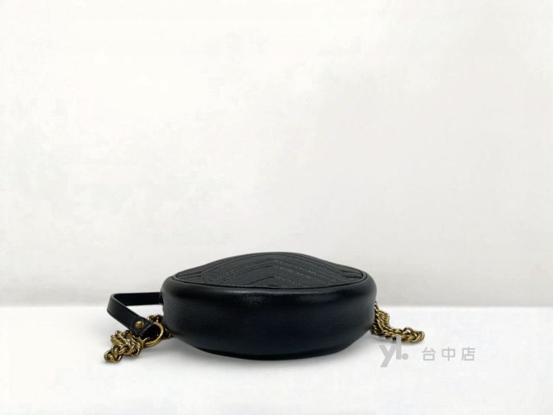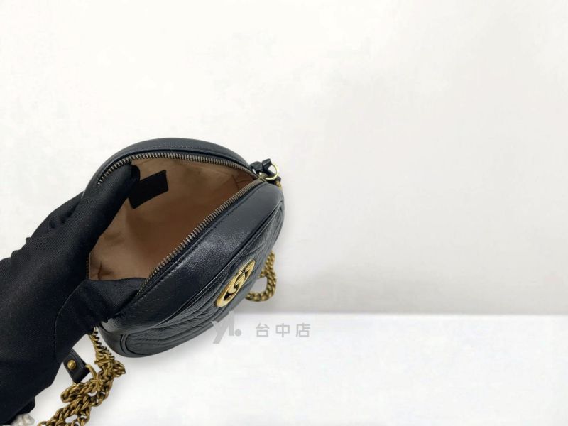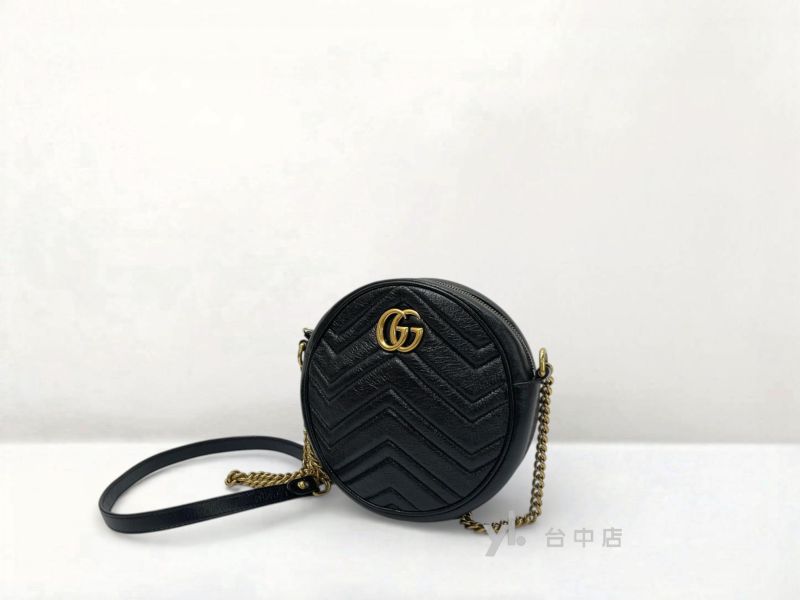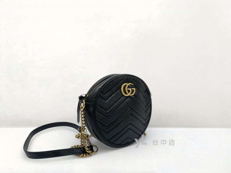 I1842 Gucci包包 黑牛皮金釦圓餅鏈帶斜背包 (台中店)