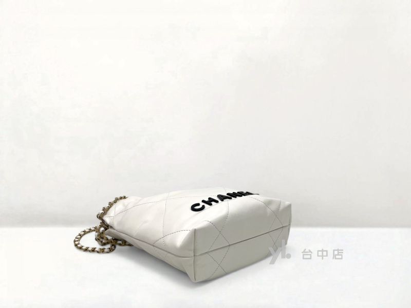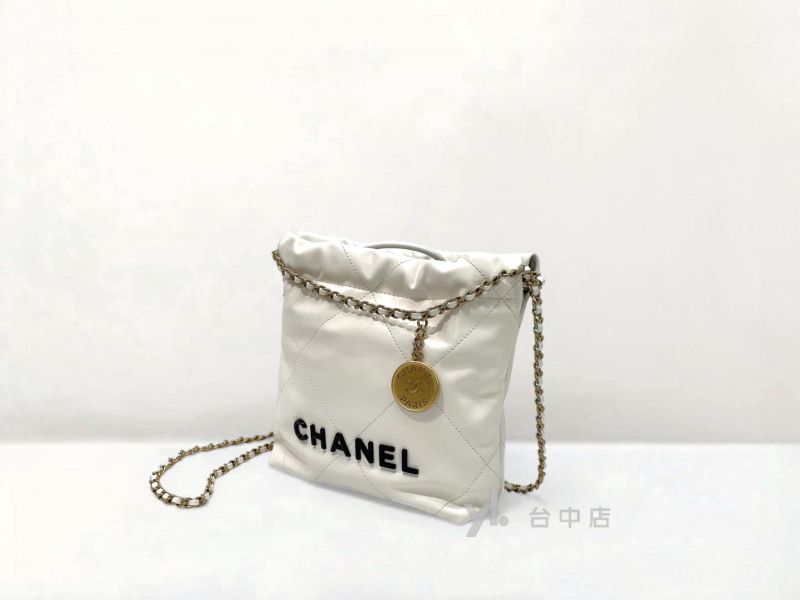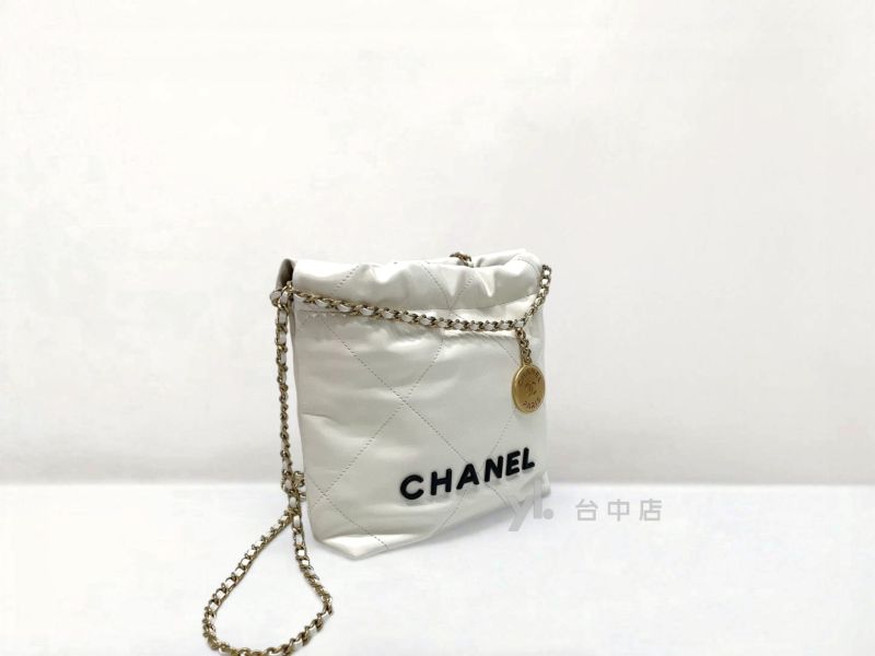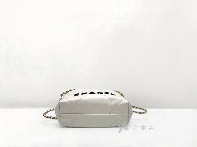 I1928 Chanel包包 白牛皮黑Logo金鏈Mini22手提斜背包AS3980 (台中店)