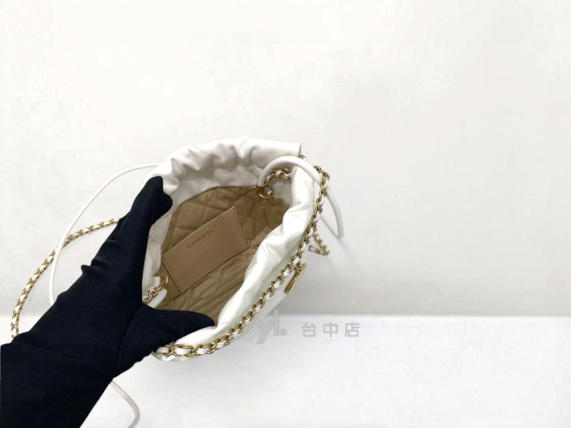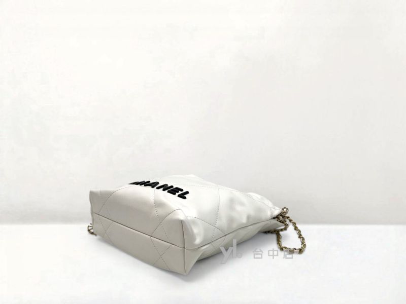 路徑: 首頁 / 商品 / BRAND / Chanel / I1928 Chanel包包 白牛皮黑Logo金鏈Mini22手提斜背包AS3980 (台中店)...