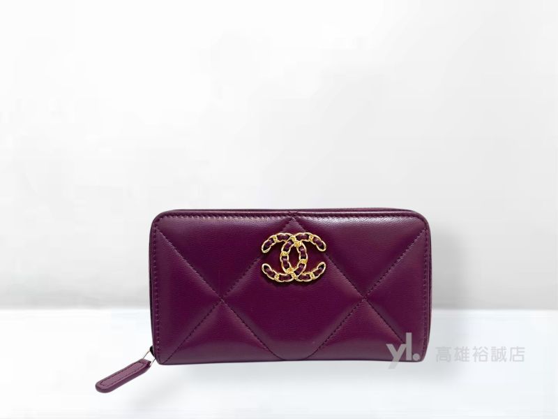 P4951 Chanel皮夾 Chanel 紫羊皮金釦19ㄇ拉4卡中夾AP0948(高雄... M1141 BV卡包 黑羊皮粗編織6格Cassette金釦零錢卡包755370VBW038803...