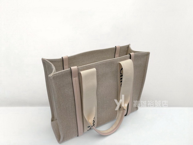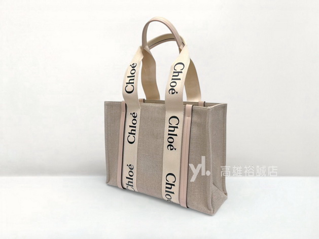 K11233 Chloe包包 亞麻帆布拼藕粉牛皮Woody中號托特包 (高雄裕誠店)