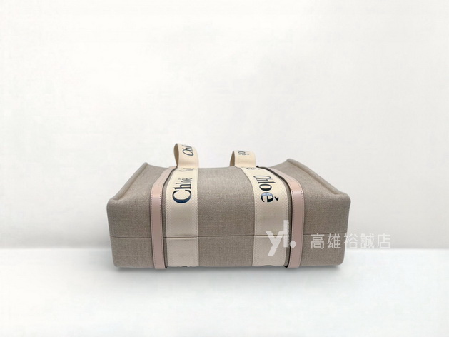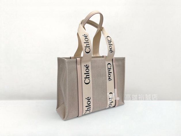 路徑: 首頁 / 商品 / CHLOE / CHLOE-包款 / K11233 Chloe包包 亞麻帆布拼藕粉牛皮Woody中號托特包 (高雄裕誠店)...
