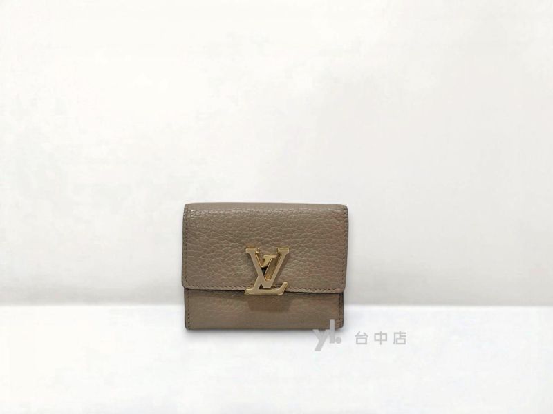 I1758 LV皮夾 灰色牛皮內咖啡色金釦Capucines XS三折5卡短夾 M68747... K11522 Balenciaga包包 黑牛皮鱷魚壓紋霧金釦下蓋肩背包 (高...