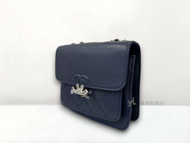 路徑: 首頁 / 商品 / BRAND / Chanel / K11269 Chanel包包 深藍牛皮銀釦雙層皮穿鍊肩斜背包A98666 (高雄裕誠店)...