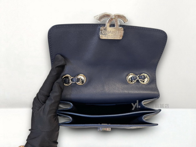 K11269 Chanel包包 深藍牛皮銀釦雙層皮穿鍊肩斜背包A98666 (高雄裕誠店)