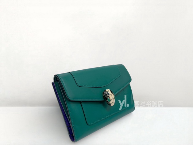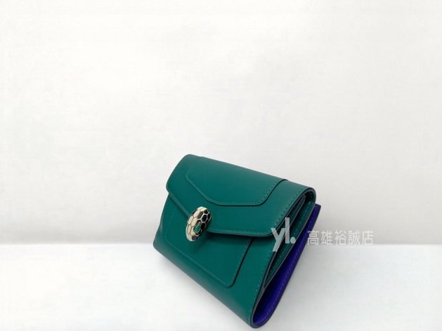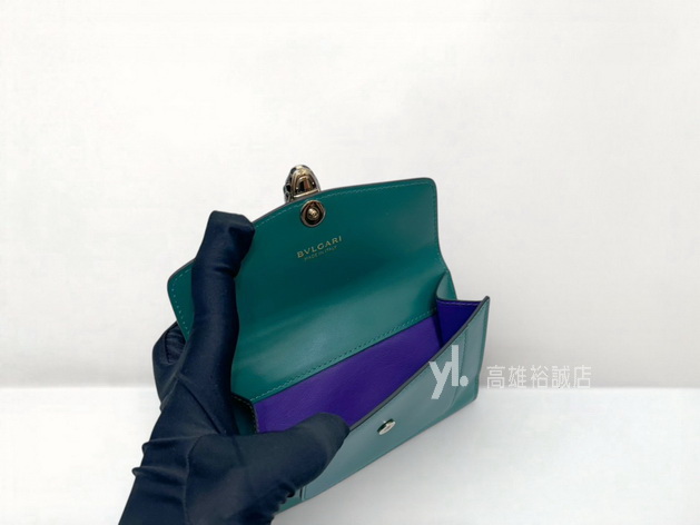 K11327 Bvlgari中夾 綠拼紫滑面牛皮銀釦8卡琺瑯Serpenti釦式中夾 (高雄裕誠店)