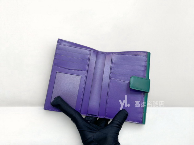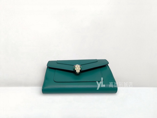 路徑: 首頁 / 商品 / BRAND / 其他品牌 / K11327 Bvlgari中夾 綠拼紫滑面牛皮銀釦8卡琺瑯Serpenti釦式中夾 (高雄裕誠店)...