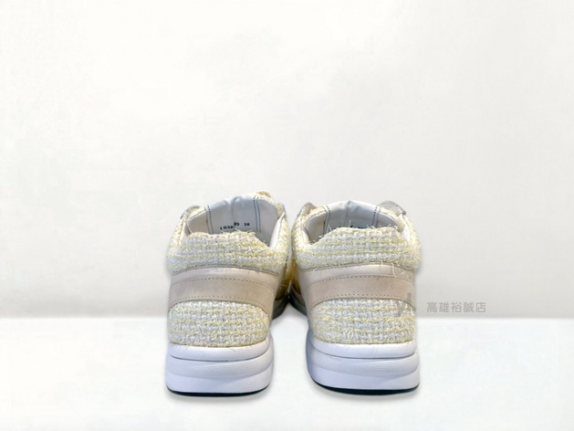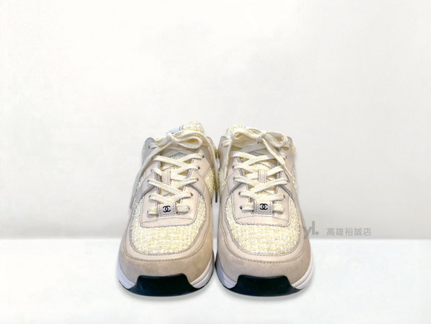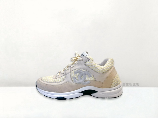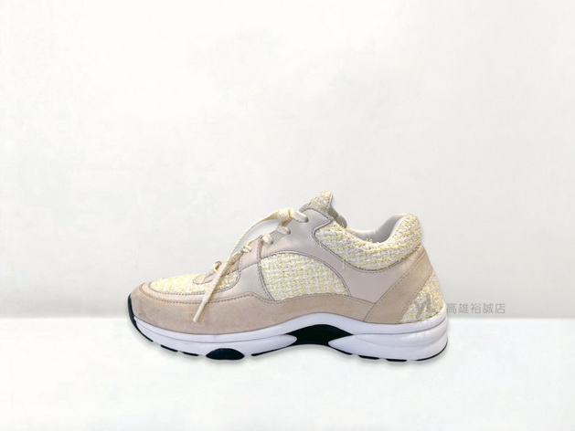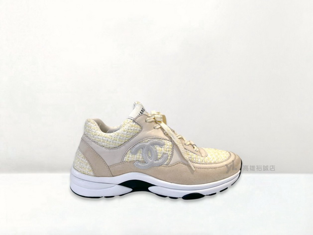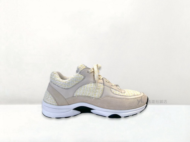 K11380 Chanel運動鞋 白黃毛呢拼米色皮革麂皮運動鞋 (高雄裕誠店)