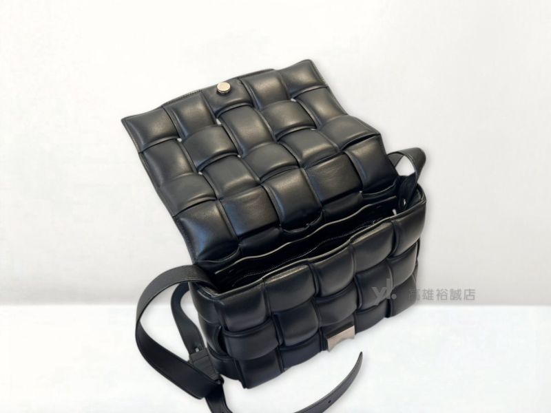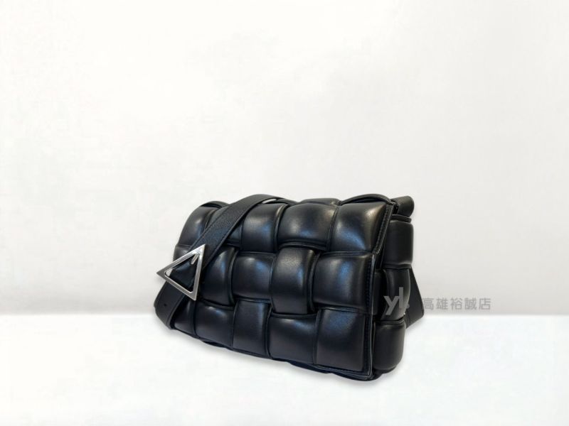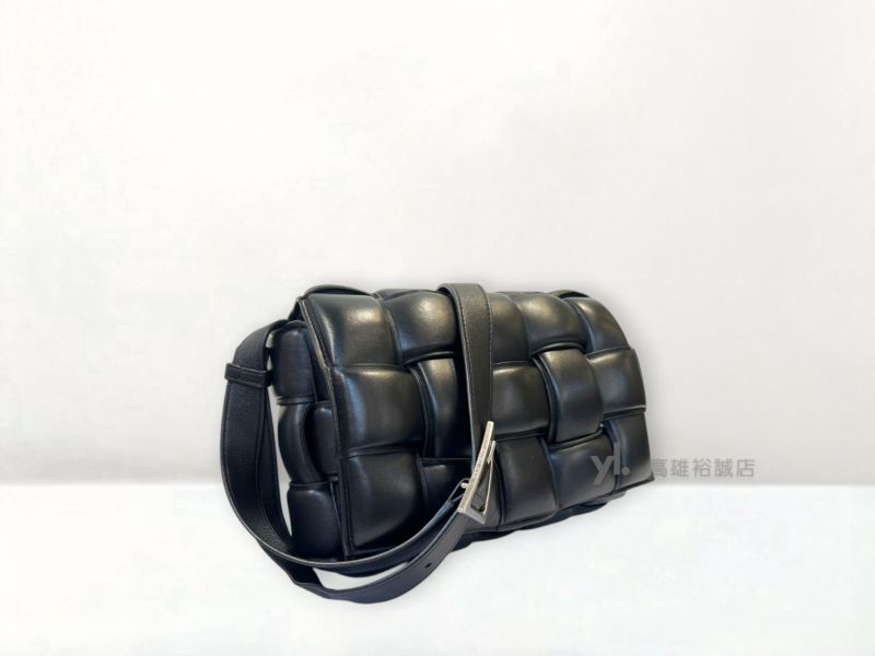 K11460 BV包包 黑羊皮銀釦Cassette 15格大編織斜背枕頭包 (高雄裕誠店)