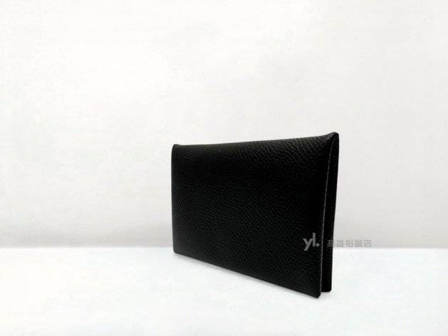 K11534 Hermes卡包 89黑Epsom銀釦Calvi卡包 (高雄裕誠店)