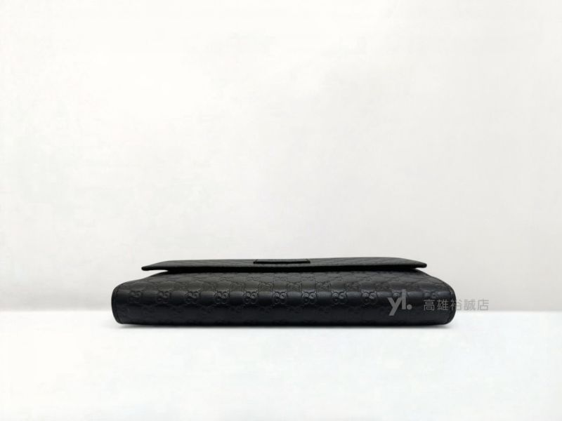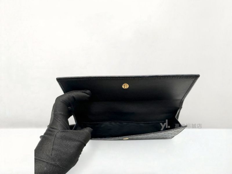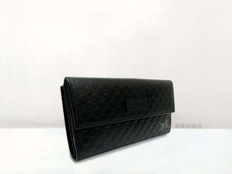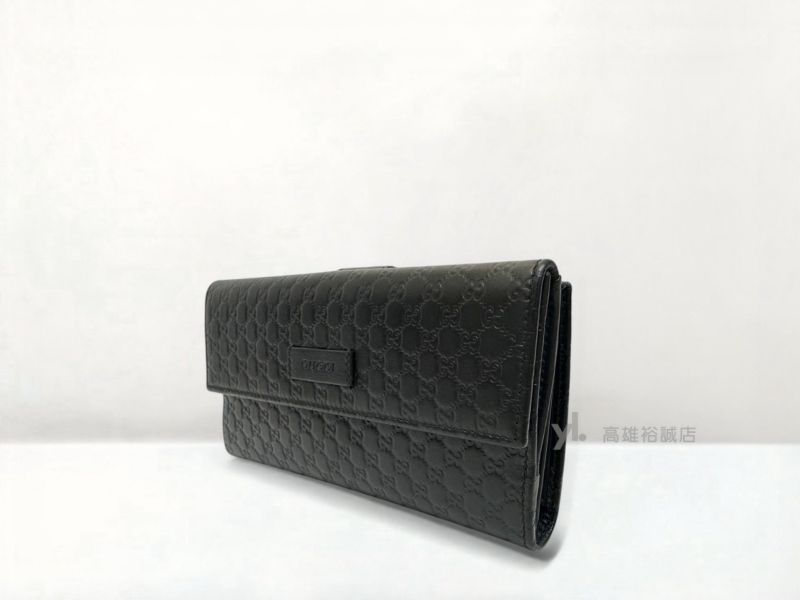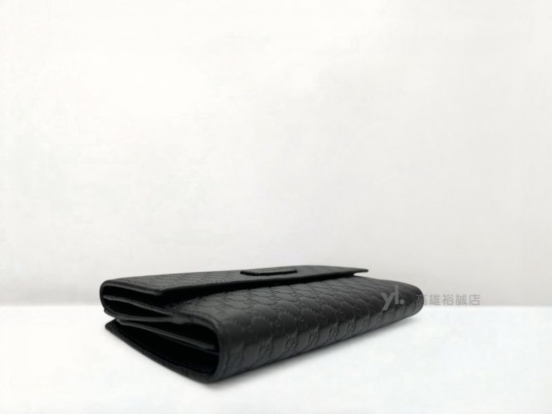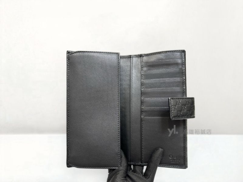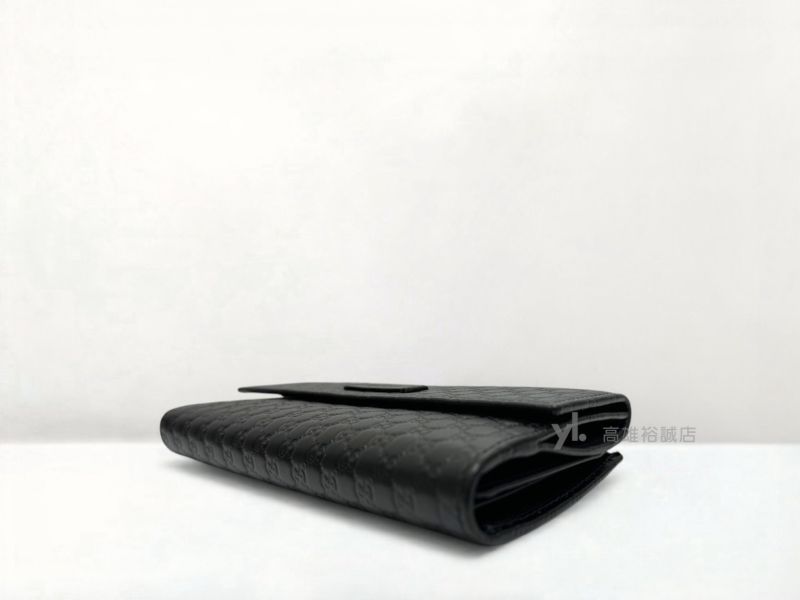 K11536 Gucci長夾 黑牛皮壓紋淡金釦前後釦7卡長夾 (高雄裕誠店)
