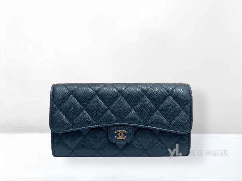 K11019 Chanel皮夾 珠光藍荔枝皮銀釦下蓋12卡長夾(高雄裕誠... V3581 LV包包 黑Taiga牛皮PochetteVoyage銀扣一字拉手拿包M30547 (...