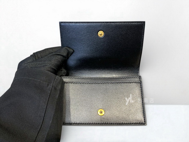 M1141 BV卡包 黑羊皮粗編織6格Cassette金釦零錢卡包755370VBW038803 (台南店)