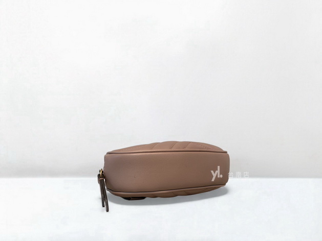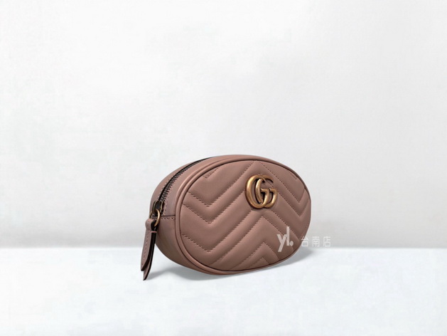 M1143 Gucci包包 藕粉牛皮山型紋Marmont金釦腰包 (台南店)