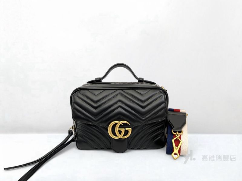 P4959 LV包包 原花金釦Sac Plat BB手提斜背琴譜包M46265(高雄裕... Q1134 Gucci包包 黑牛皮Marmont山型紋霧藍金釦藍紅白寬背帶...