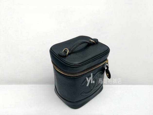 P5048 Chanel包包 黑金粒紋牛皮vintage化妝盒A01998 (高雄裕誠店)