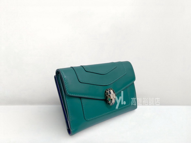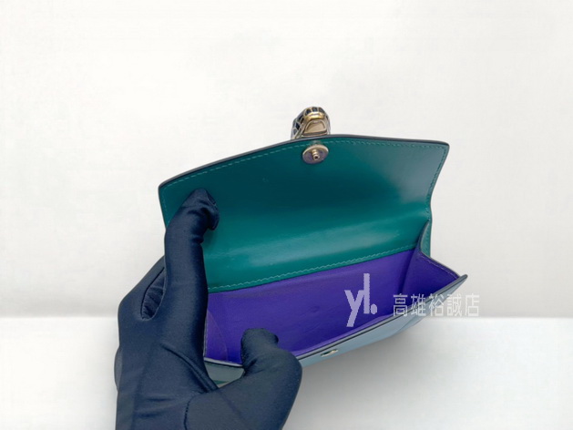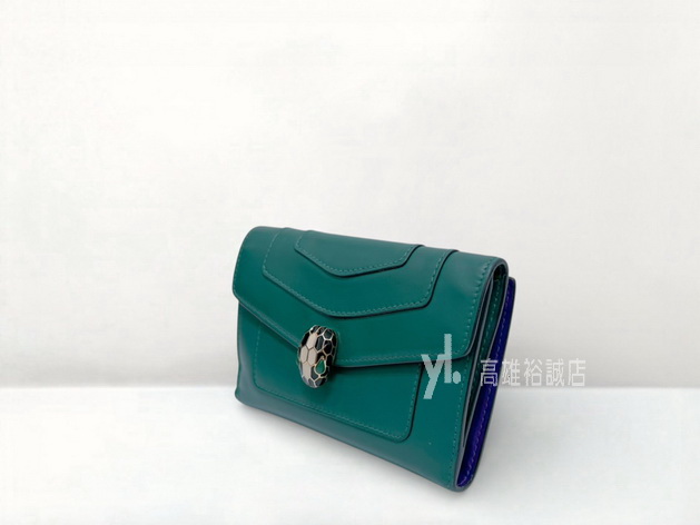 P5089 Bvlgari短夾 祖母綠小牛皮金釦內紫牛皮前後釦10卡短夾 (高雄裕誠店)
