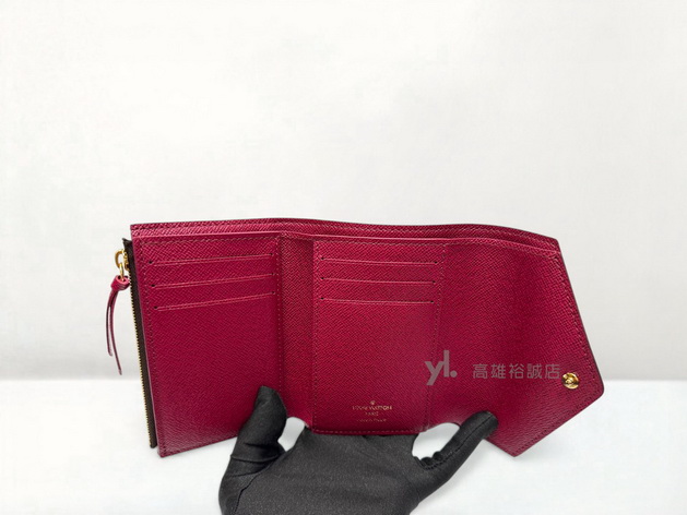 P5109 LV短夾 原花金釦Victorine內紫紅三折短夾M41938 (高雄裕誠店)