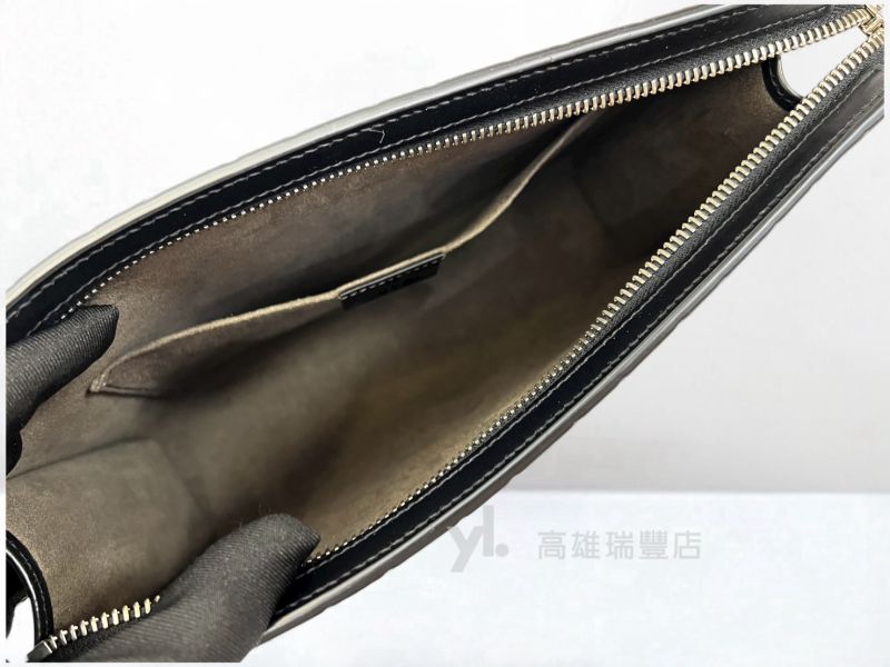 路徑: 首頁 / 商品 / BRAND / Gucci / Q0298 Gucci包包 黑牛皮GG壓紋綠紅綠織帶一字拉手拿包(瑞豐店)...