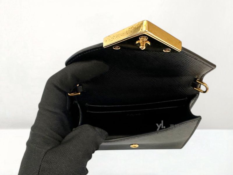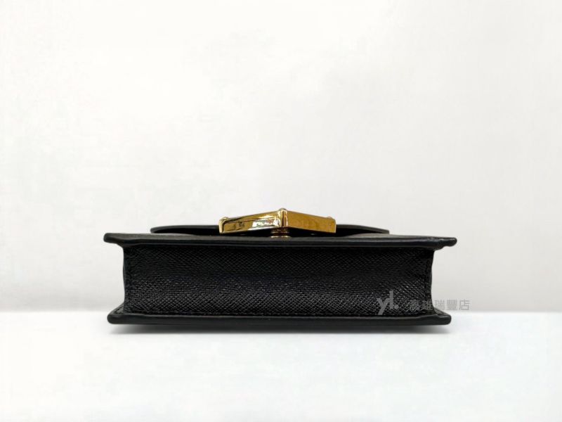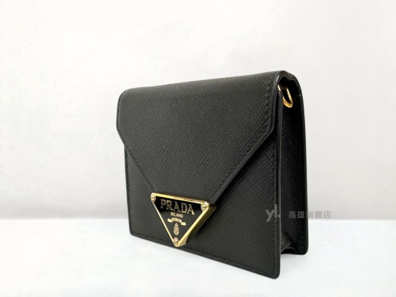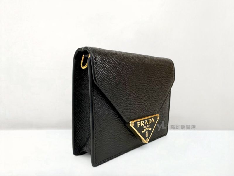 Q0951 Prada包包 黑防刮皮質信封下蓋三角鐵牌mini 2卡斜背包 (瑞豐店)