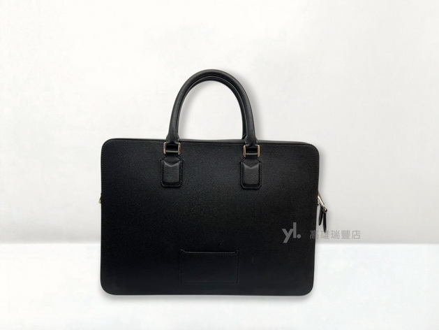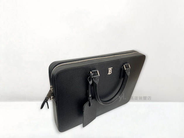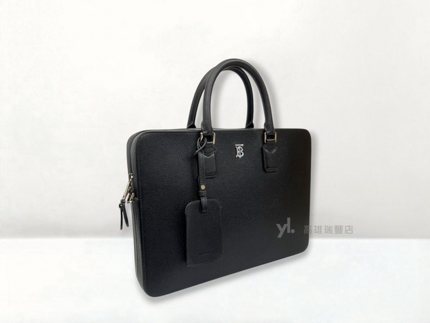 Q0961 Burberry包包 黑牛皮銀釦ㄇ拉手提肩斜背公事包 (瑞豐店)