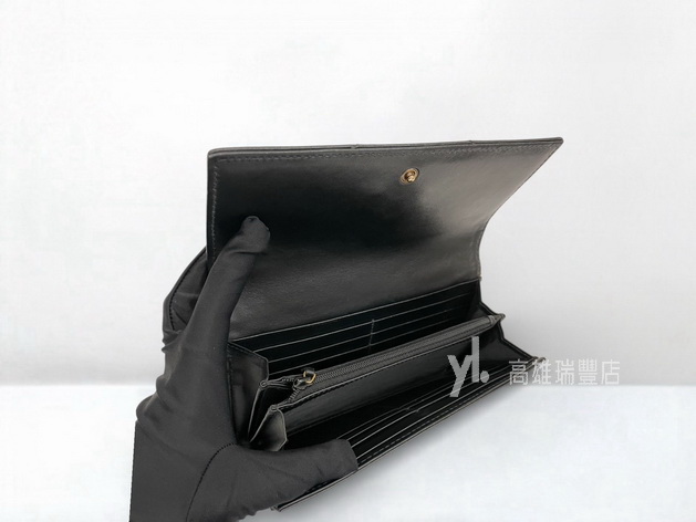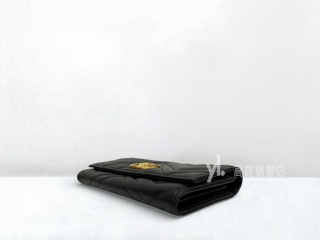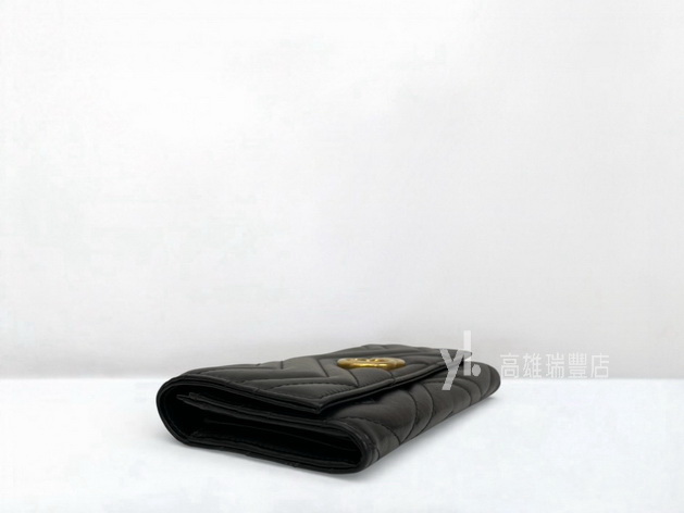 Q0969 Gucci皮夾 黑牛皮山形紋霧金釦Marmont下蓋12卡長夾 (瑞豐店)
