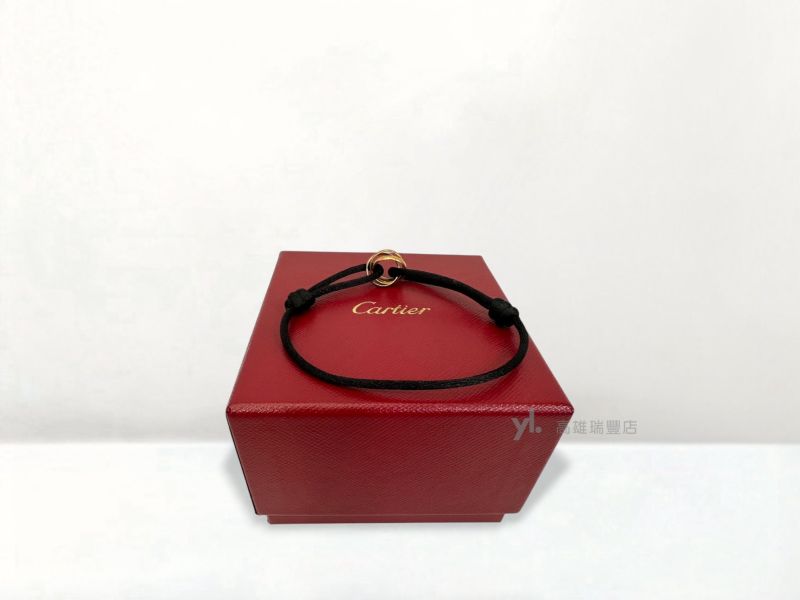Q0974 Cartier手鍊 750三色K金三環戒Triniity黑繩手鍊B6016700(瑞豐店)