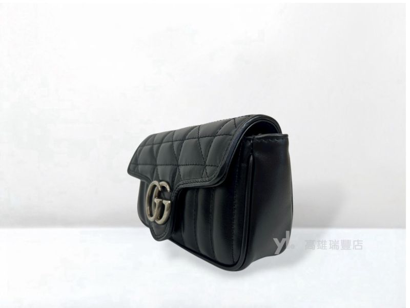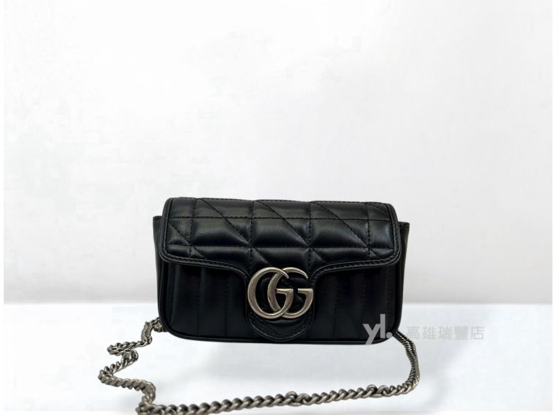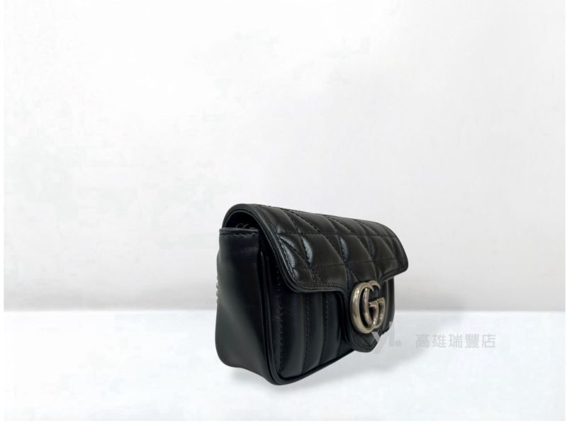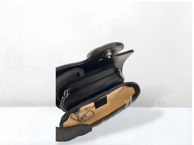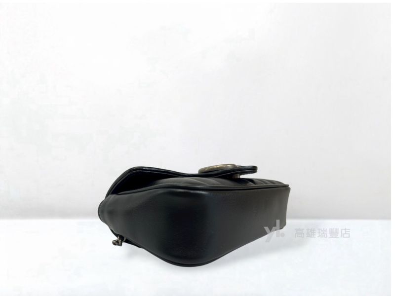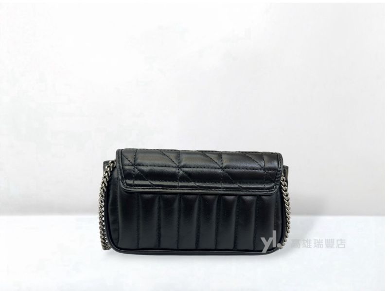 Q0989 Gucci包包 黑牛皮直斜紋MarmontMini霧銀釦下蓋肩斜鏈包(瑞豐店)