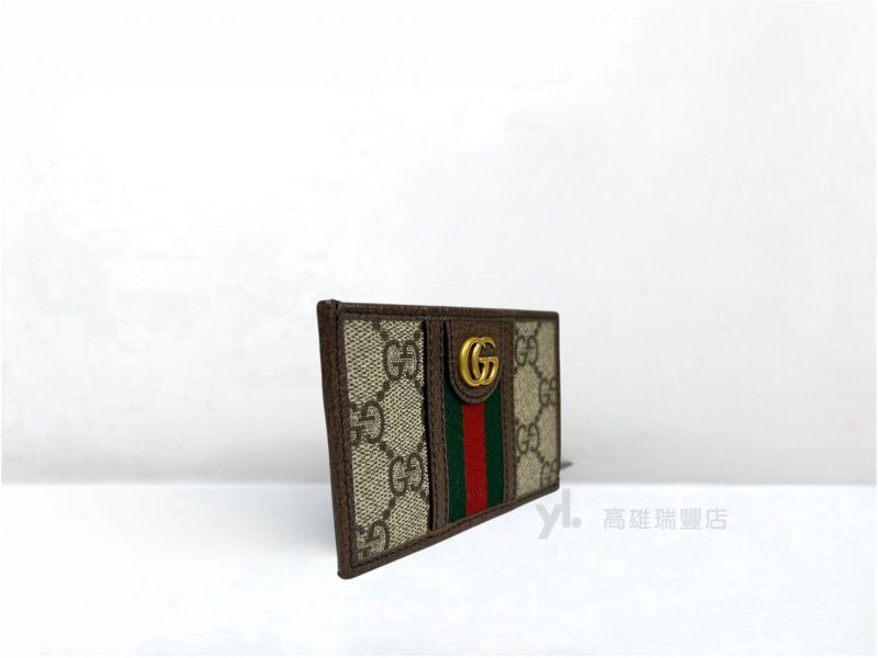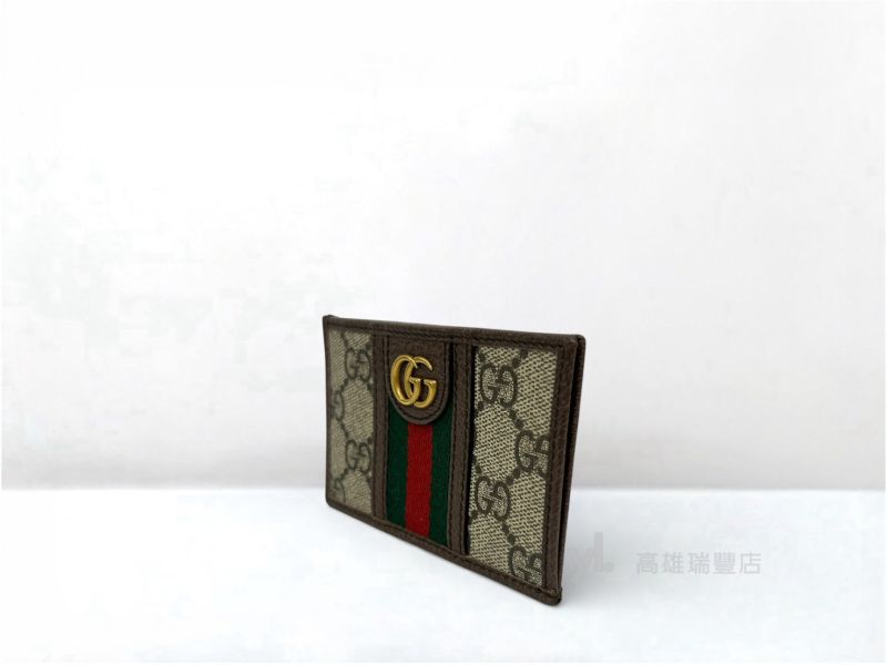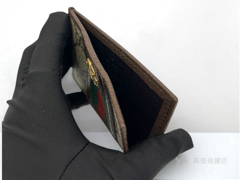 Q0995 Gucci卡夾 PVC咖皮邊綠紅綠織帶L開簡易卡包(瑞豐店)
