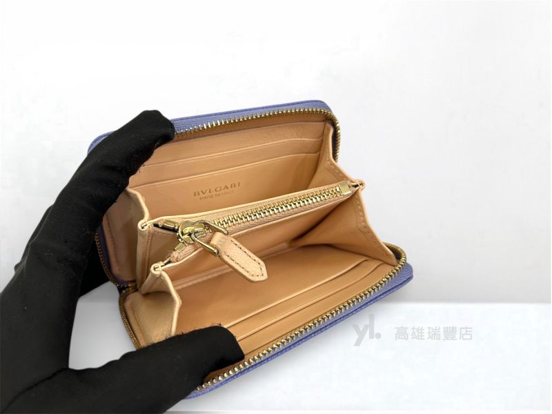 Q1000 Bvlgari卡包 薰衣草紫內膚色防刮牛皮金釦6卡ㄇ拉零錢卡包(瑞豐店)
