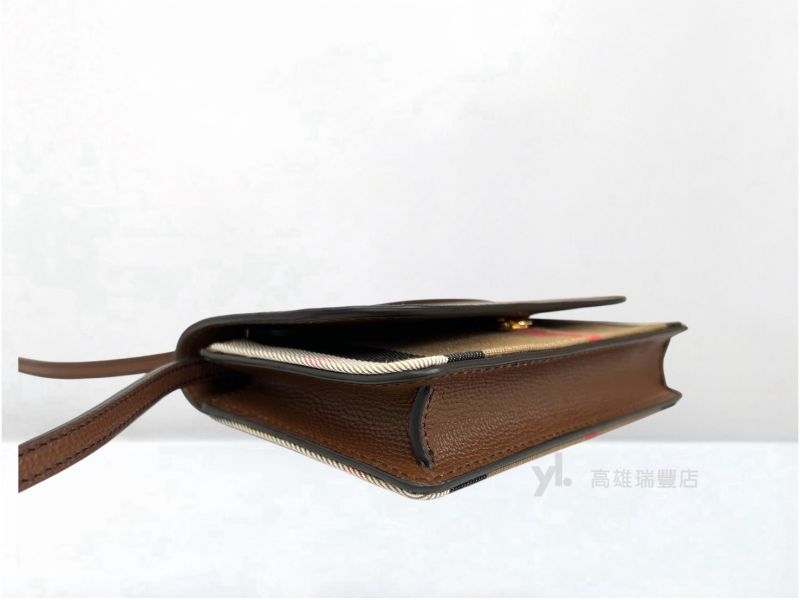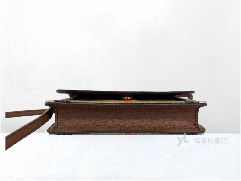 Q1125 Burberry包包 經典格紋咖牛皮金釦內6卡下蓋磁吸斜背WOC 80628091(瑞豐店)
