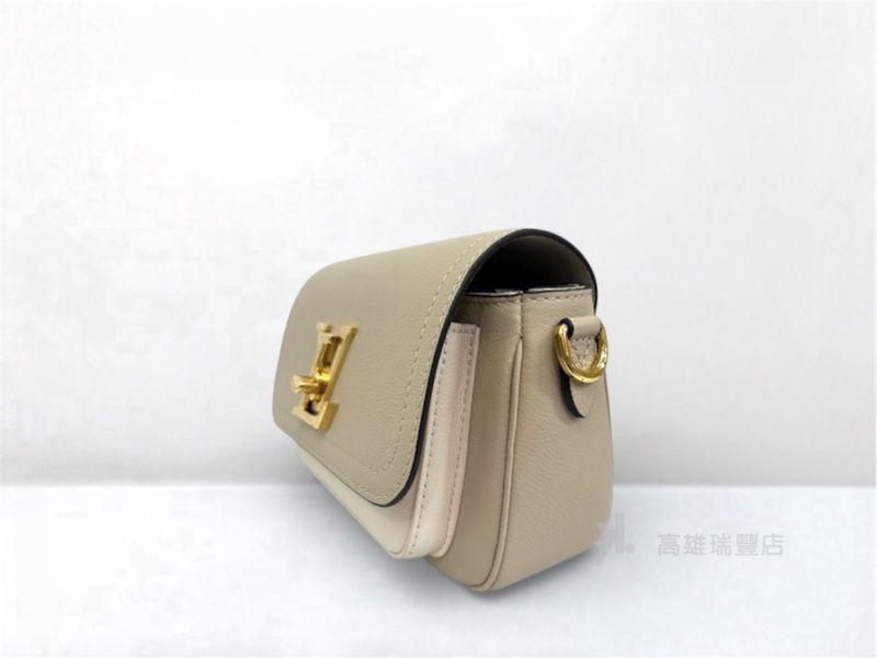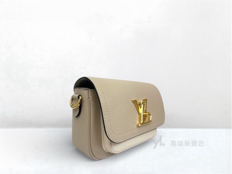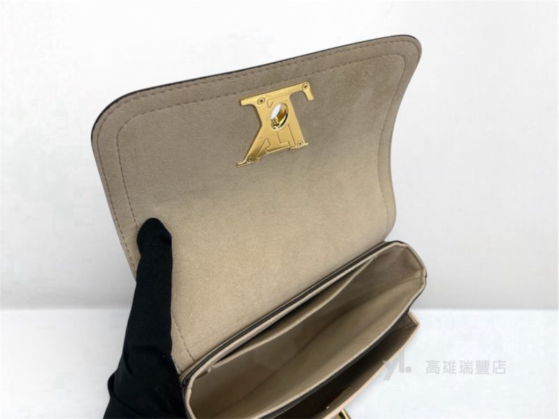 Q1271 LV包包 灰褐拚米白牛皮金釦Lockme Tender 下蓋肩斜背包M58554(瑞豐店)
