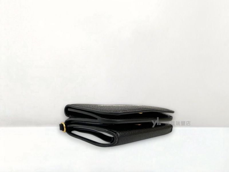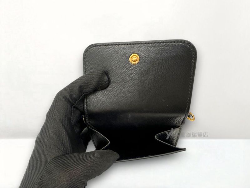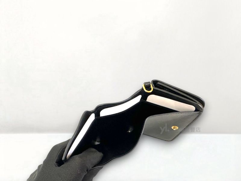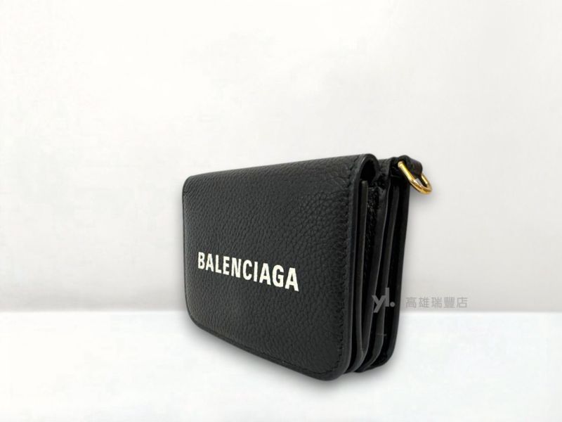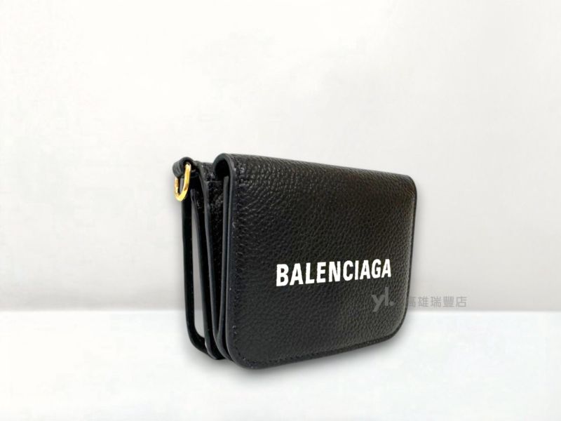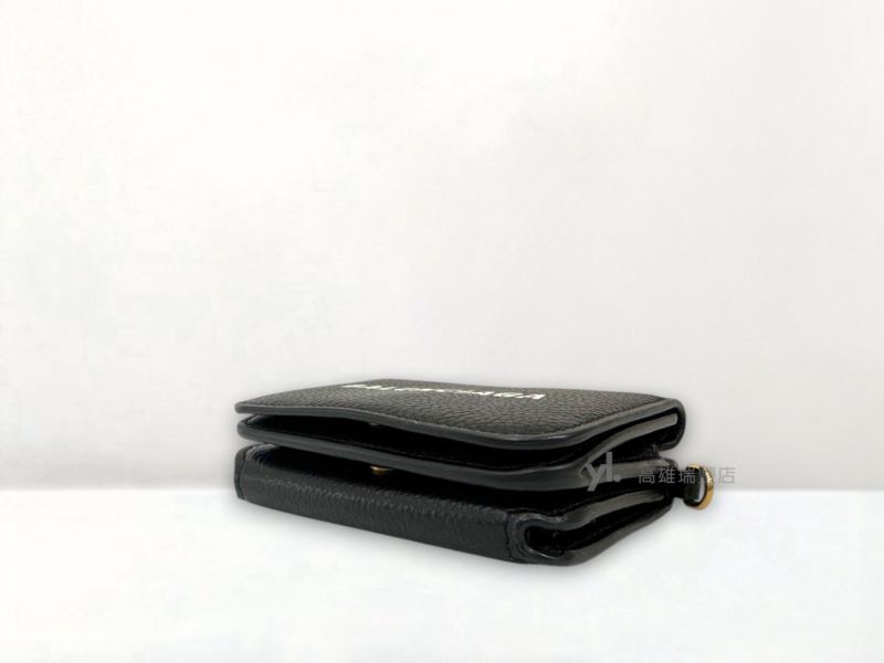 Q1326 Balenciaga短夾 黑牛皮霧金釦前釦後三折3卡斜背短夾 (瑞豐店)