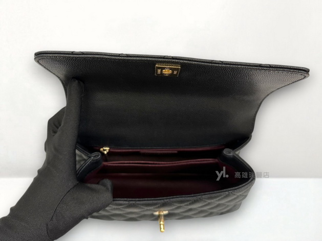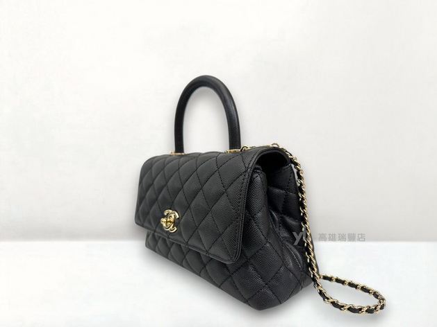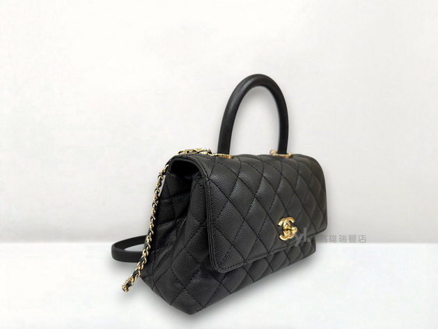 Q1473 Chanel包包 黑荔枝牛皮金釦coco handle手提斜背包A92990 (瑞豐店)