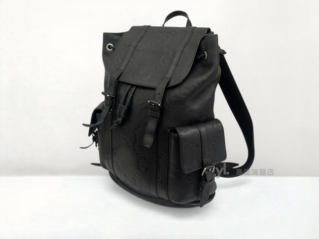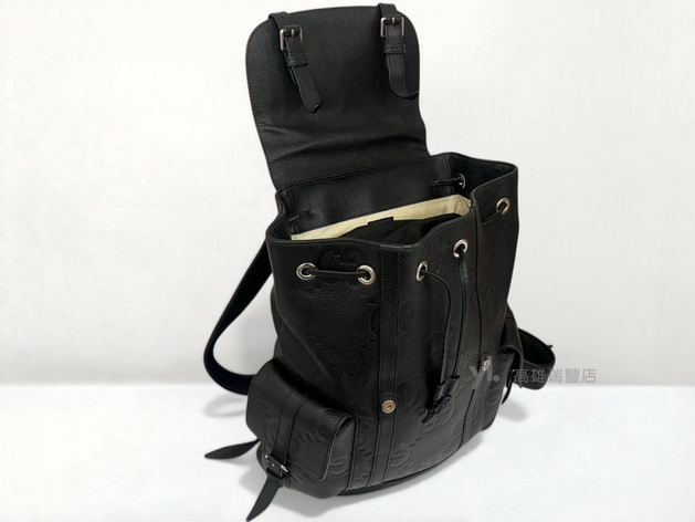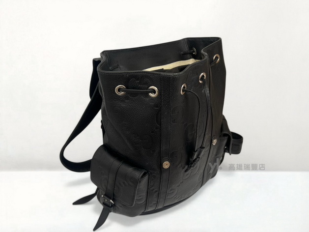 Q1478 Gucci包包 黑牛皮壓紋銀釦雙前口袋Jumbo後背包 (瑞豐店)