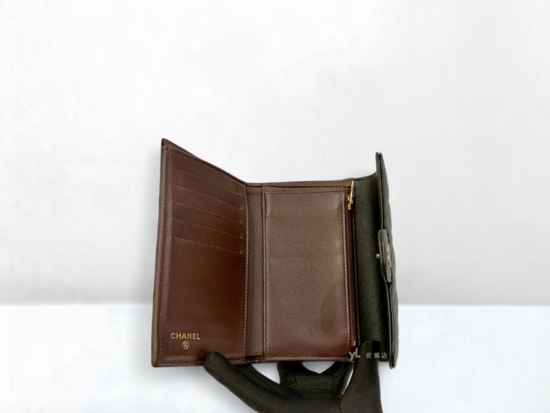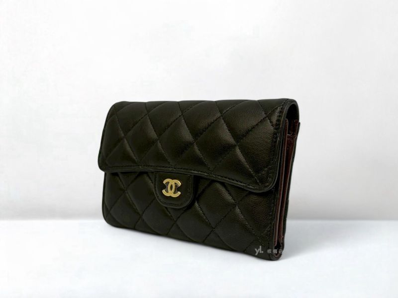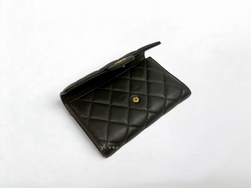 S5067 CHANEL皮夾 黑羊皮金釦三折中夾AP0232 (板橋府中店)