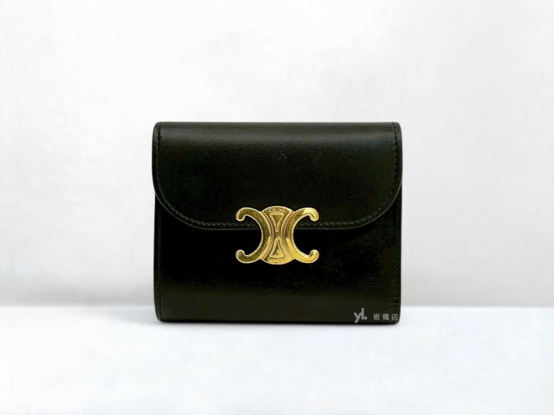 S5082 Celine皮夾 TRIOMPHE黑牛皮翻蓋三折短夾 (板橋府中店) K10815 YSL包包黑荔枝皮銀釦Kate流蘇肩斜鍊包474366(高雄裕誠...