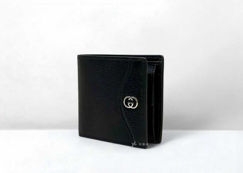 S5094 GUCCI皮夾 黑牛皮雙G對開短夾734998 (板橋府中店)