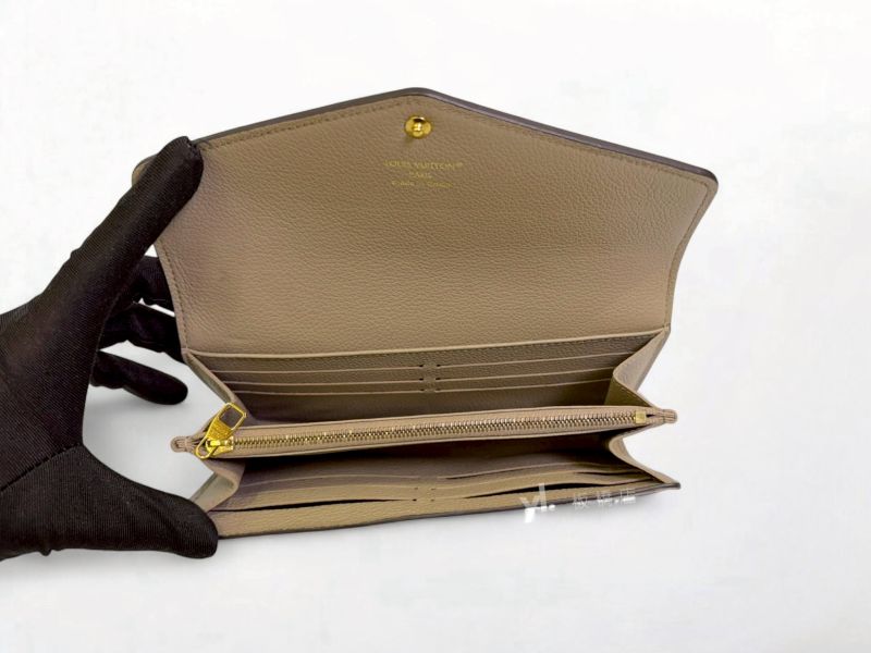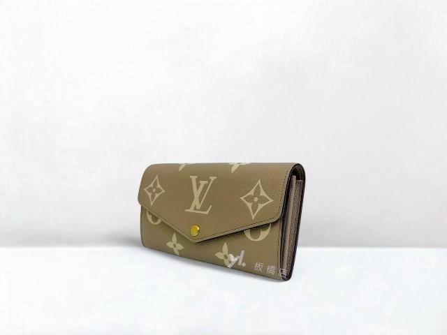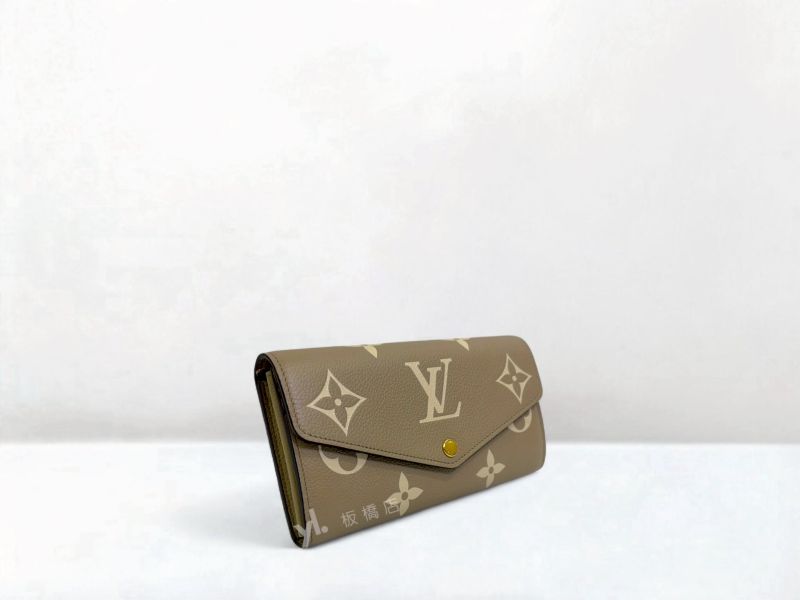 S5121 LV皮夾 Sarah 斑鳩灰色/奶油色信封下蓋長夾M81049 (板橋府中店)