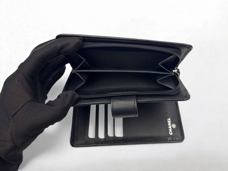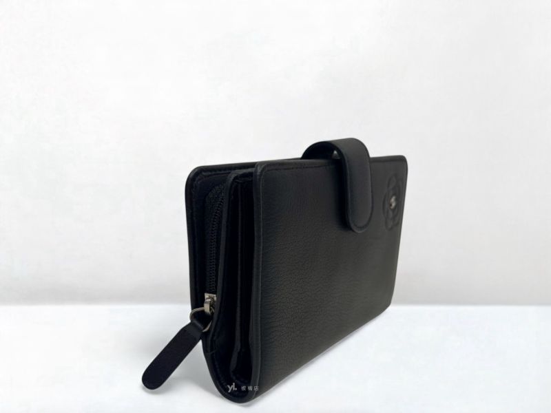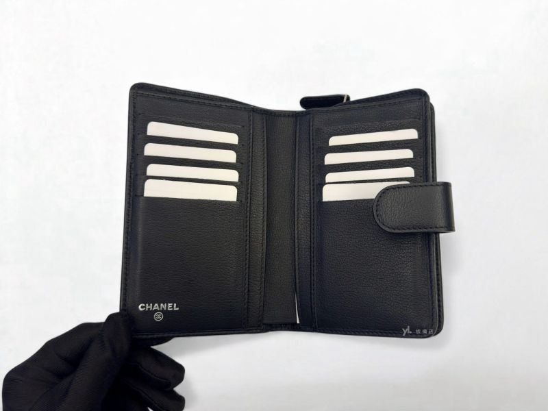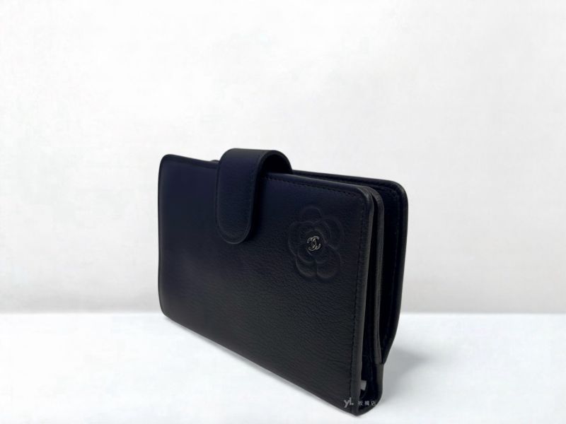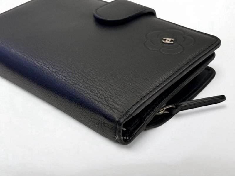 S5174 CHANEL皮夾 黑皮羊山茶花對開中夾A50094 (板橋府中店)