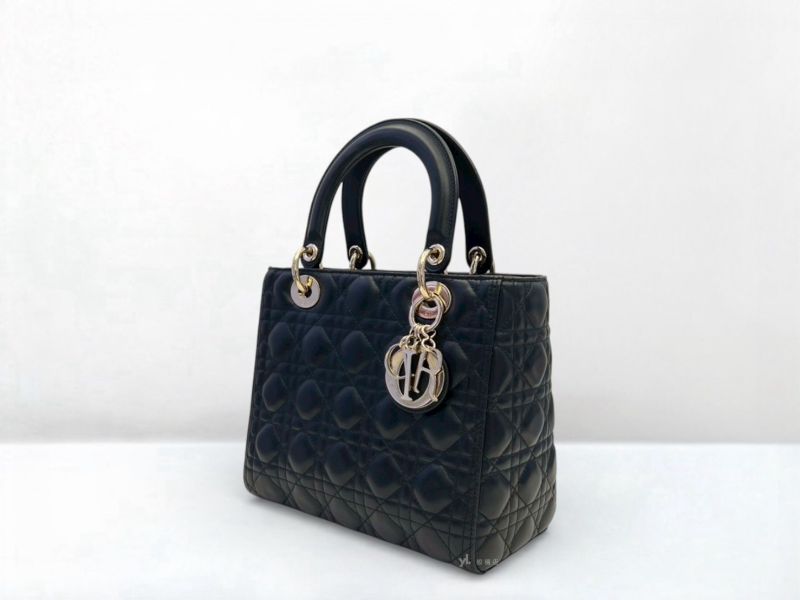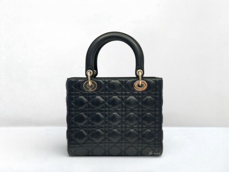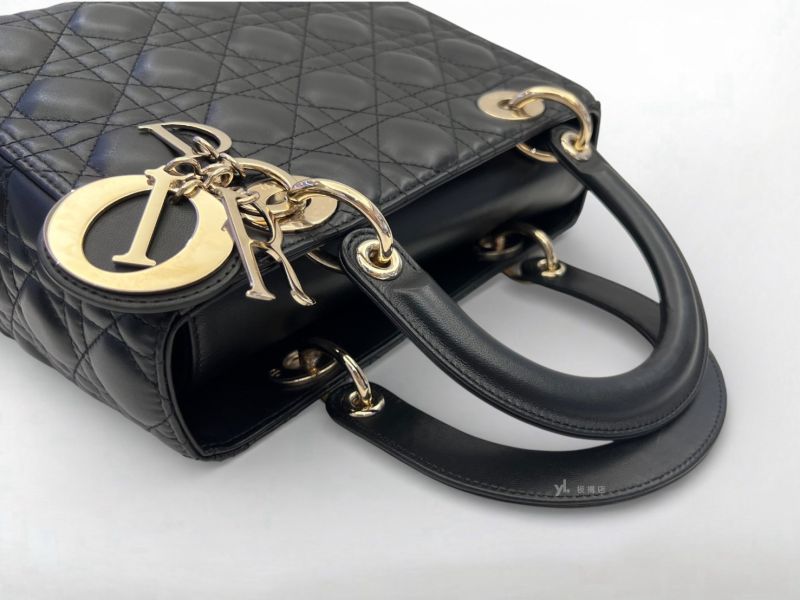 S5200 Dior包包 Lady Dior黑羊皮中型黛妃包 (板橋府中店)