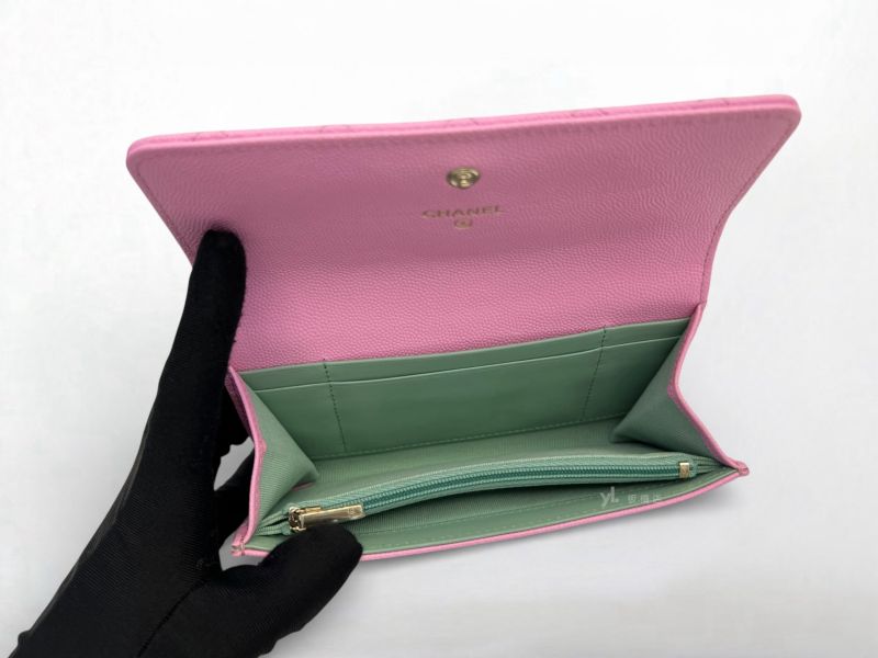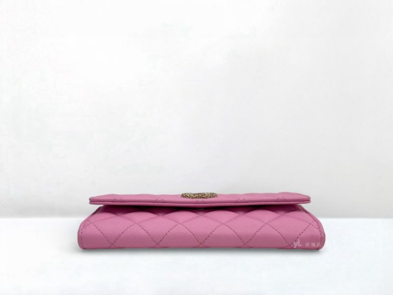 S5275 CHANEL皮夾 粉荔枝牛皮鏤空雙C LOGO下蓋中夾AP3183 (板橋府中店)