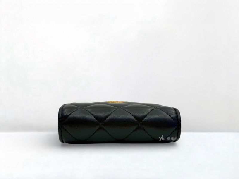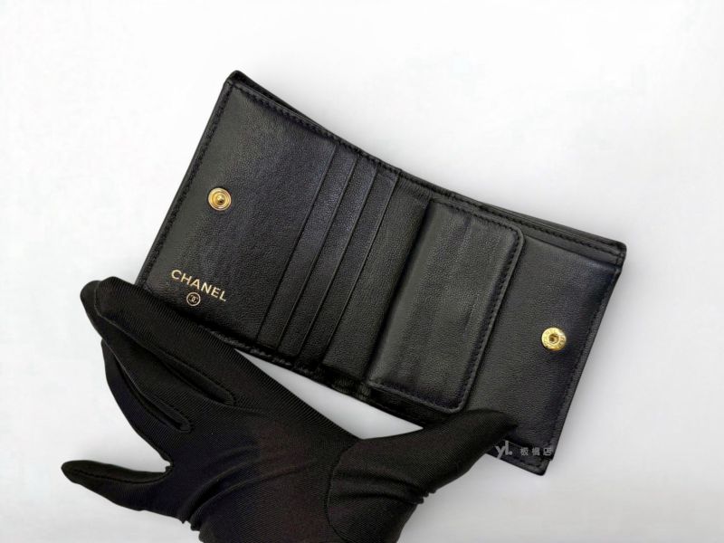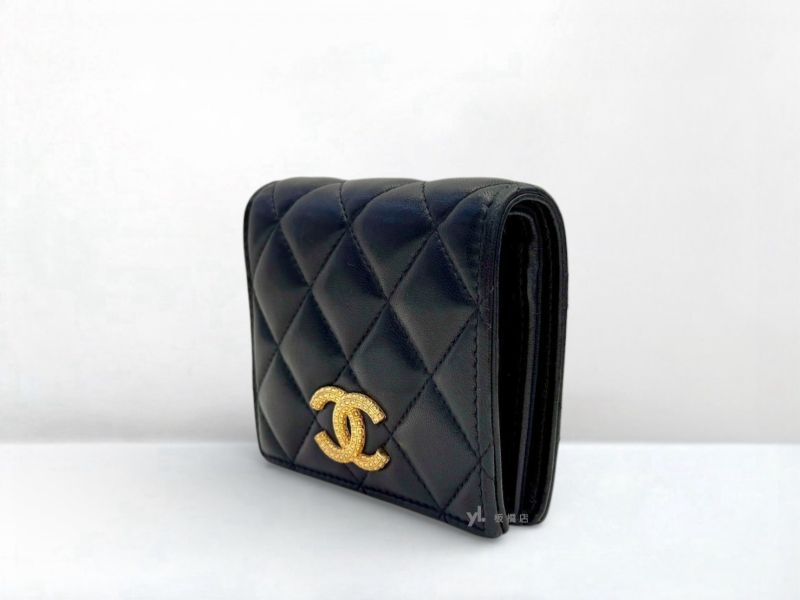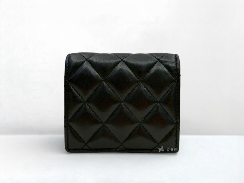 S5283 CHANEL皮夾 黑羊皮金LOGO對開扣式零錢短夾AP3407 (板橋府中店)