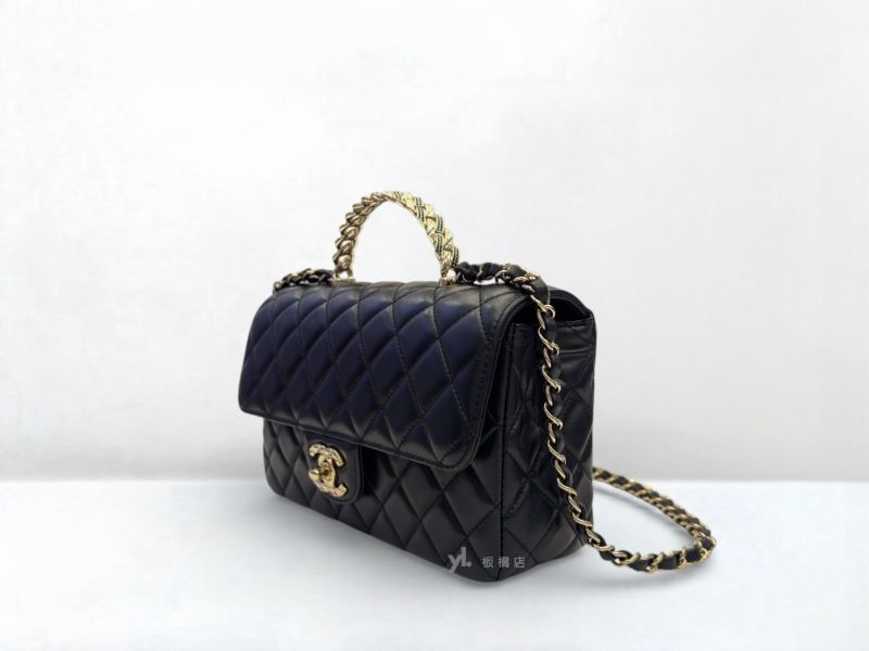 S5309 CHANEL包包 黑羊皮金釦水鑽手把口蓋包AS4925 (板橋府中店)